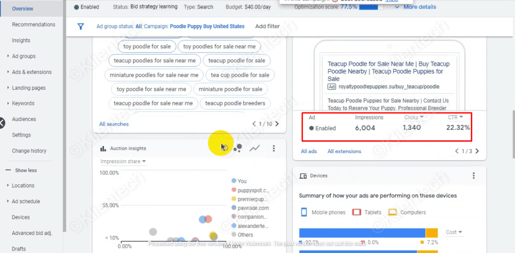 Our Client wanted to Sale his Teacup and miniature poodles in the entire United States and Canada. For this, his target was to get as many as enquiries possible. Previously he was getting 10-15  leads in budget of $70/Day. He wanted to increase the lead count in the money. To be frankly said “He wanted to double the leads in same budget”