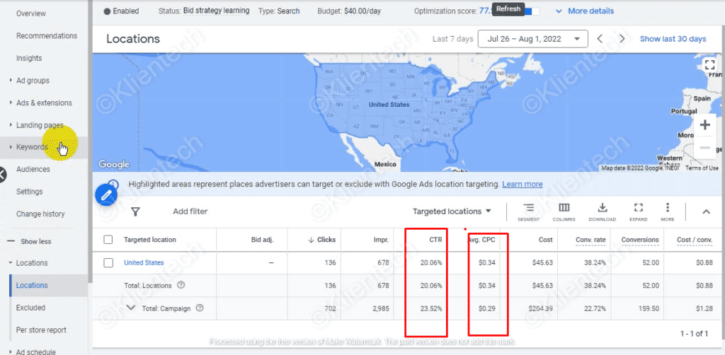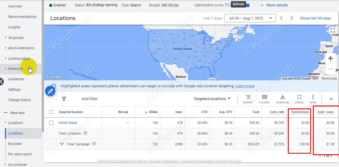3. The avg CPC and Cost per conversion was to be lowered in order to double the lead count.